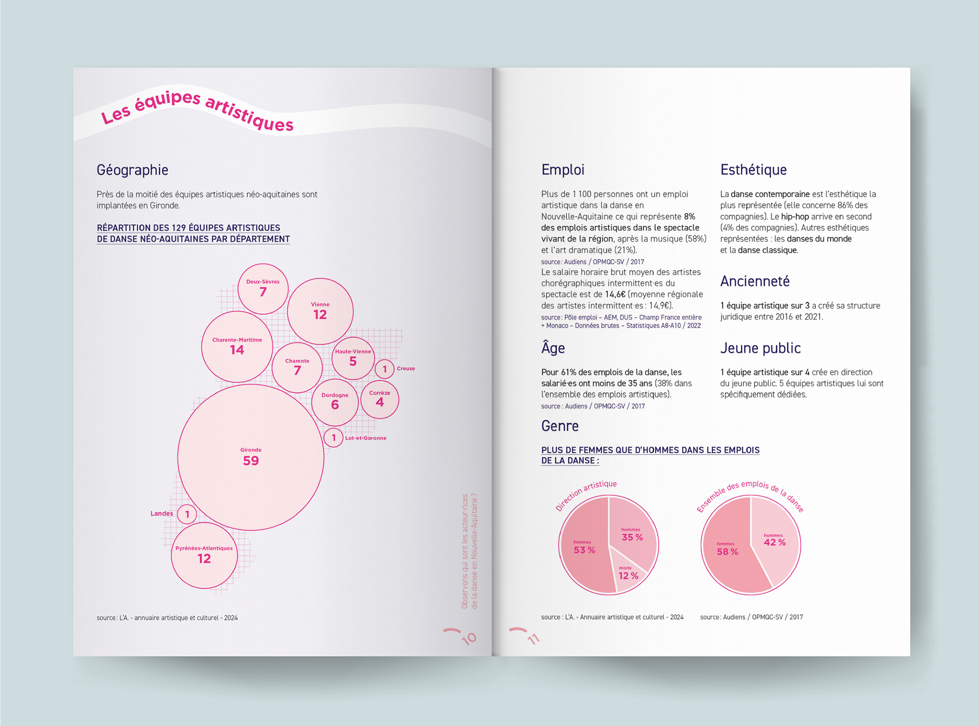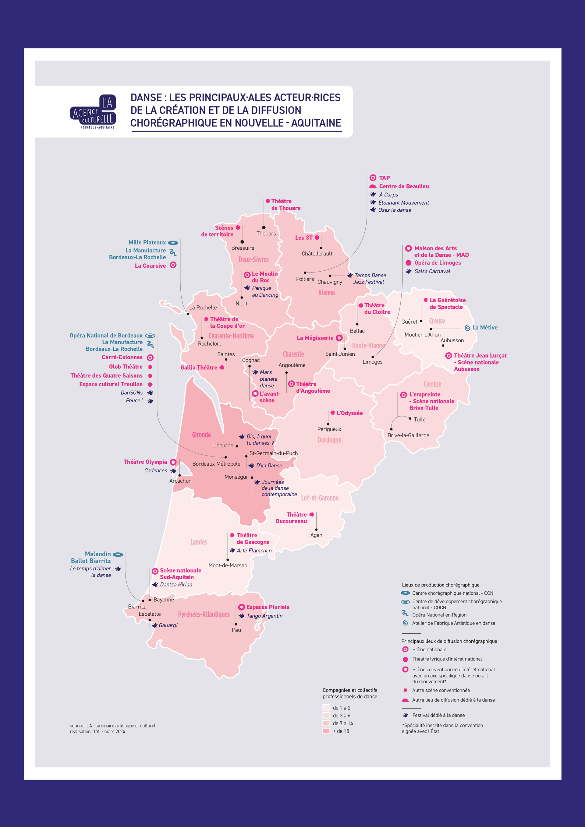 J’ai également mis en forme une carte et des données chiffrées sur les équipes artistiques, les principaux lieux de création et de diffusion chorégraphique et les festivals dédiés à la danse.