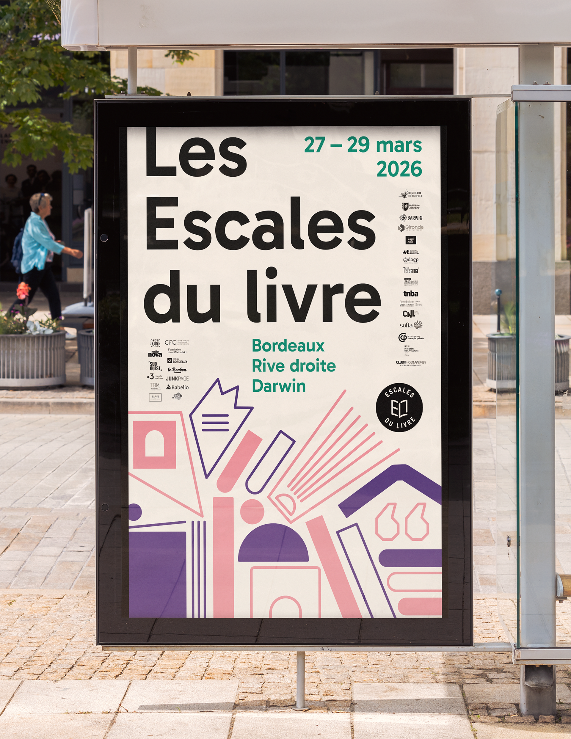 Proposition graphique d'affiches (non retenues) pour les Escales du livre lors d'un appel à projet pour l’événement 2026.
