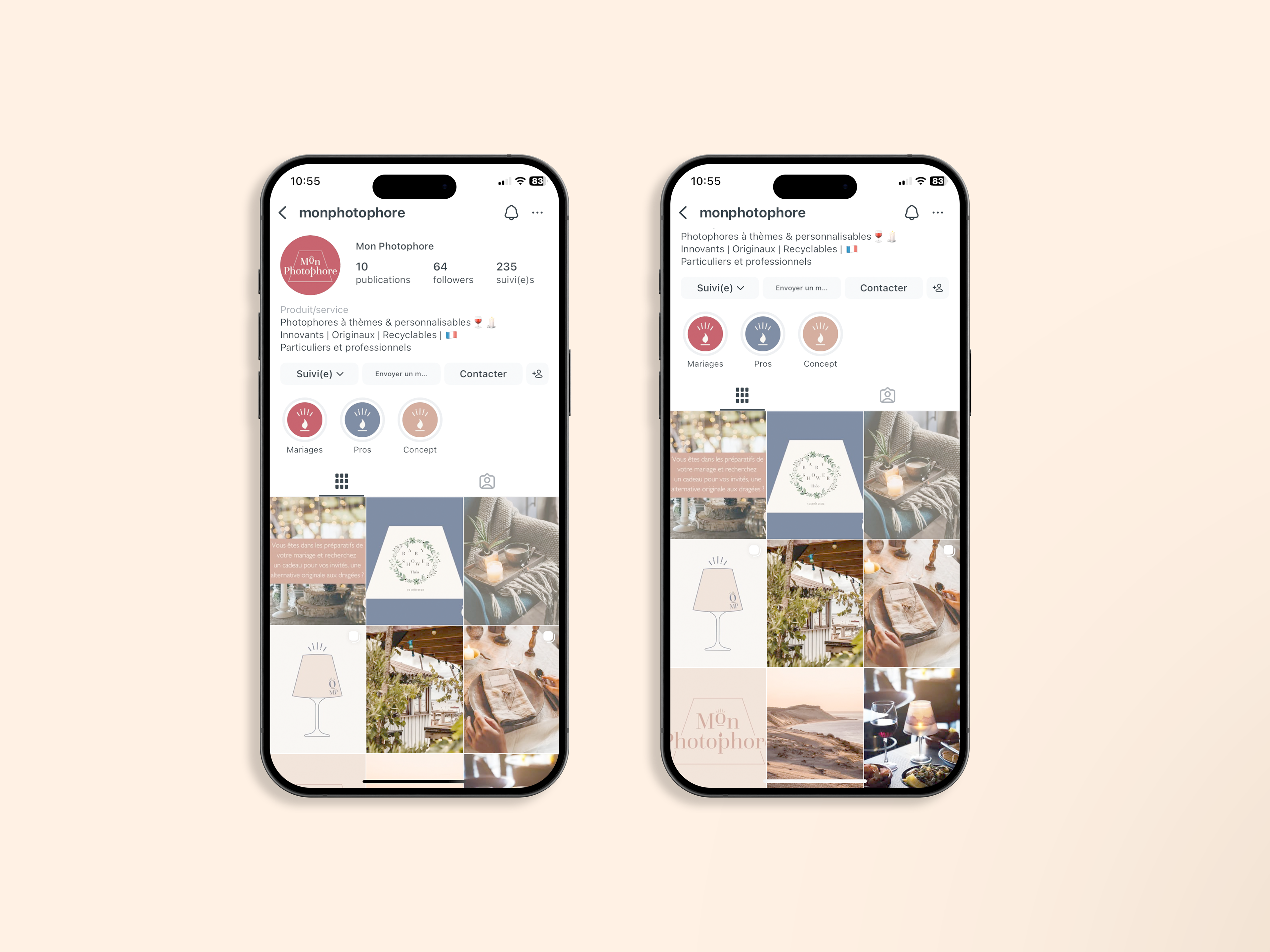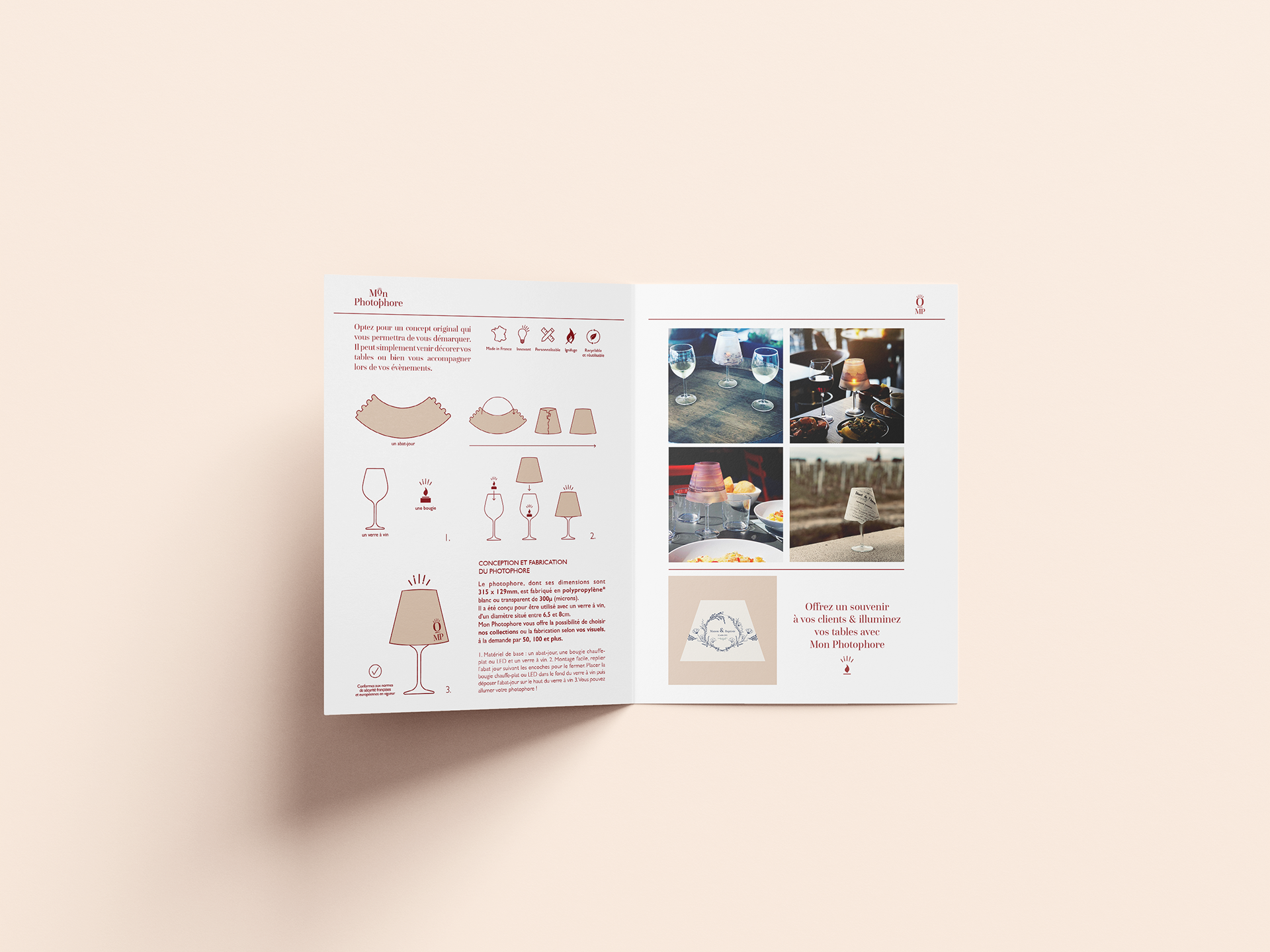 Mon Photophore est une marque imaginée par Justine Deguine. Son concept est de proposer des photophores à thème, personnalisables et éco-conçus pour les particuliers et les entreprises. J’ai réalisé l’identité visuelle de sa marque avec différentes variantes. Un concept graphique épuré qui se décline sur différents supports.